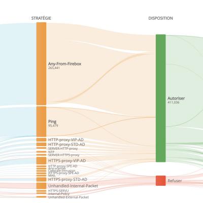 Dimension offre plus de 100 tableaux de bord et rapports de sécurité complets. D'un point de vue global, les administrateurs peuvent voir qui consomme le plus de bande passante, les modèles de trafic inhabituels et quels sites Web sont le plus souvent visités. Ils peuvent ensuite accéder aux données des journaux individuels pour obtenir des détails granulaires.